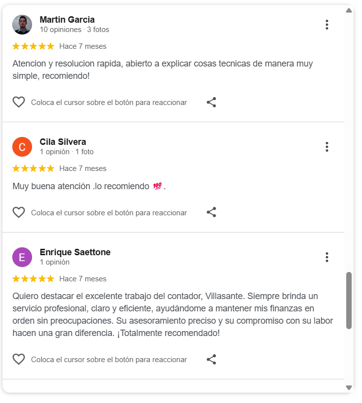 “miramos las opiniones de google y de facebook, teniamos una Unipersonal, con los beneficios de la SAS, hicimos el cambio, nos preocupaba la complejidad del tramite , el Contador no solo abrio la Sociedad SAS, sino que luego nos dio recomendaciones para avanzar en el negocio, definitivamente recibimos mas de lo que imaginamos”